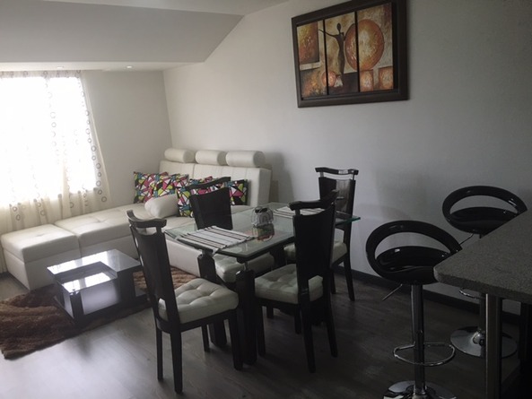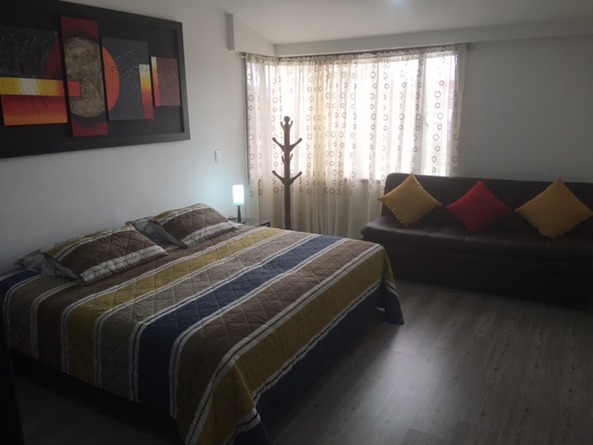 Comprende (1) Habitación con TV, Baño privado, Cama King y Sofacama; Un segundo ambiente con Cocina, nevera, lavadora, Barra Americana y Comedor: Un tercer ambiente con Sala de entretenimiento (Muebles de sala, Televisor, Teatro en Casa), Estudio y WiFi. Incluye Servicio de Camareria (1) día por semana.