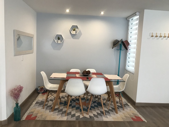 Espacioso apartamento dos años de uso, de 92 mts completamente dotado. Cuenta con cocina integral, zona de lavandería con lavadora secadora y lavadero, sala y comedor independientes, con 3 tvs, wiffi y Roku, 3 habitaciones, dos baños completos y 2 garajes. excelente ubicación. Precio negociable.
