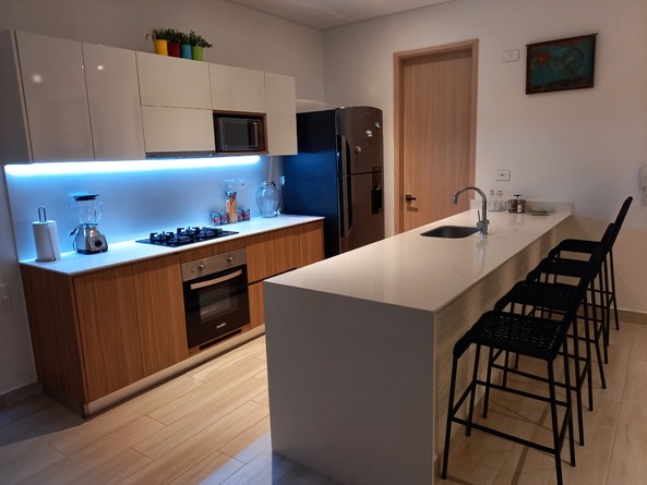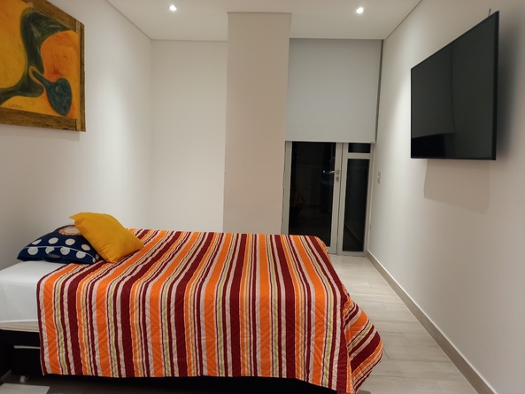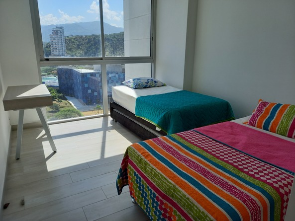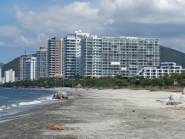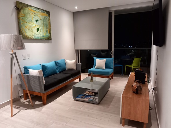 Se arrienda espectacular apartamento a 50 metros de la playa en el sector de Playa Salguero, de la ciudad de Santa Marta. Cuenta con 93 M2 los cuales cuenta con 1 cocina americana abierta con barra y zona de ropas independiente equipada con ventilación y luz natural; amplia sala amoblada con TV 70’, stereo, balcón. Cuenta con baño social,01 habitacion Master con TV 60’ y baño interno, balcón con vista panoramica, con closets empotrados. 1 habitacion de huespedes con closets amplios empotrados y vista panorámica. La propiedad cuenta con 1 parqueadero. El edificio se encuentra ubicado a una calle de la playa. La copropiedad cuenta con cuenta con 2 piscinas, salon social, parque infantil , jacuzzis,turco, gimnasio, billar, parqueo para visitantes, vigilancia 24 horas. Cel[utilice el form. o tel. de contacto]