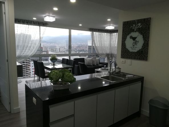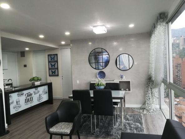 Moderno y hermoso apartamento en Poblado Alejandría de 60 metros cuadrados cuenta con 2 habitaciones 2 baños salón comedor sala cocina integral zona de ropa piscina gimnasio jacuzzi unidad cerrada portería 24 horas parqueadero ascensor zonas verdes sauna Internet televisión teléfono citofono salón social, ubicado en un lugar tranquilo a tan solo minutos caminando de centros comerciales como Oviedo, Santa Fe, la milla de oro del poblado.