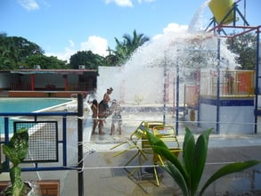 Cinco habitaciones multiple con aire acondicionado, tv satelital,baños privados,dos piscinas un parque interactivo con chorros de agua,salones para eventos . parqueadero. acceso al rió bodoquero ,cosinas con gas y leña..